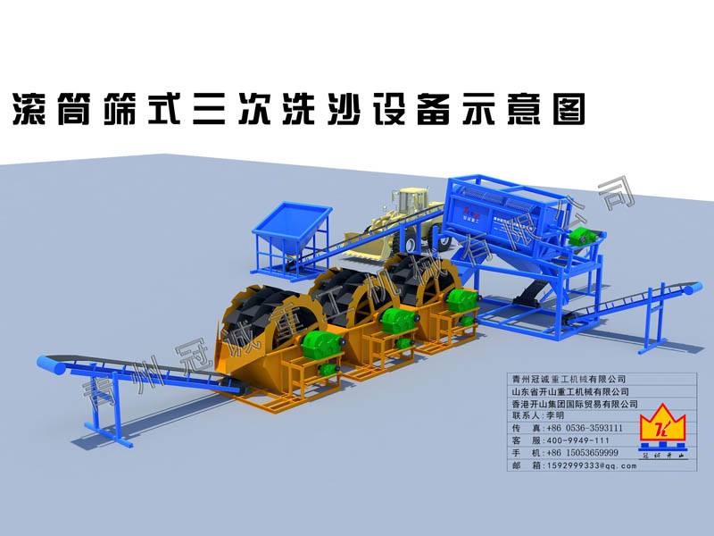每小時80-100m3處理量滾筒篩式三次洗沙設(shè)備流程概述